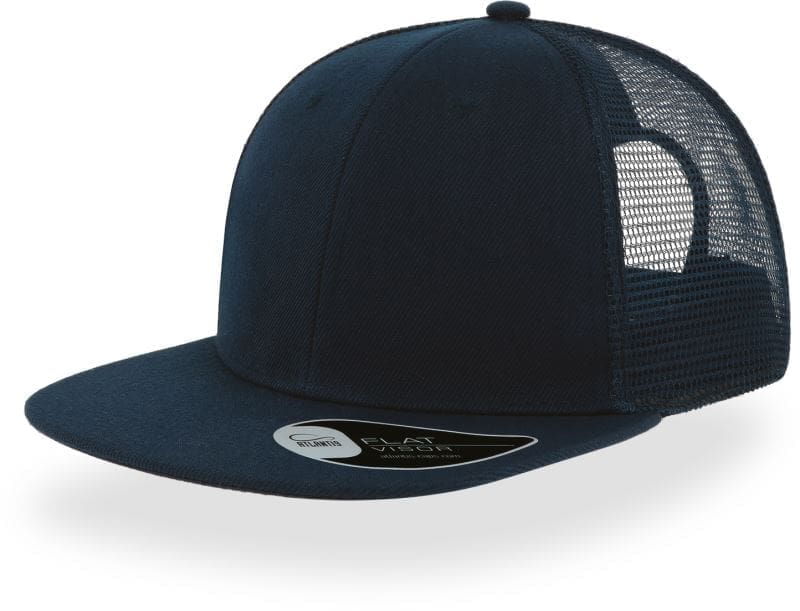 Erneuertes nachhaltiges Modell Snap Mesh-S (Artikel: 33.0257), Aufkleber auf dem Schirm, flaches Schild mit 6 Ziernähten, Schirmunterseite in Kontrastfarbe, Netz seitlich und hinten, strukturiertes Frontsegment, gestickte Luftlöcher, Snapverschluss, TearAway Label, Handwäsche, nicht bügeln, nicht trocknergeeignet, nicht chemisch reinigen