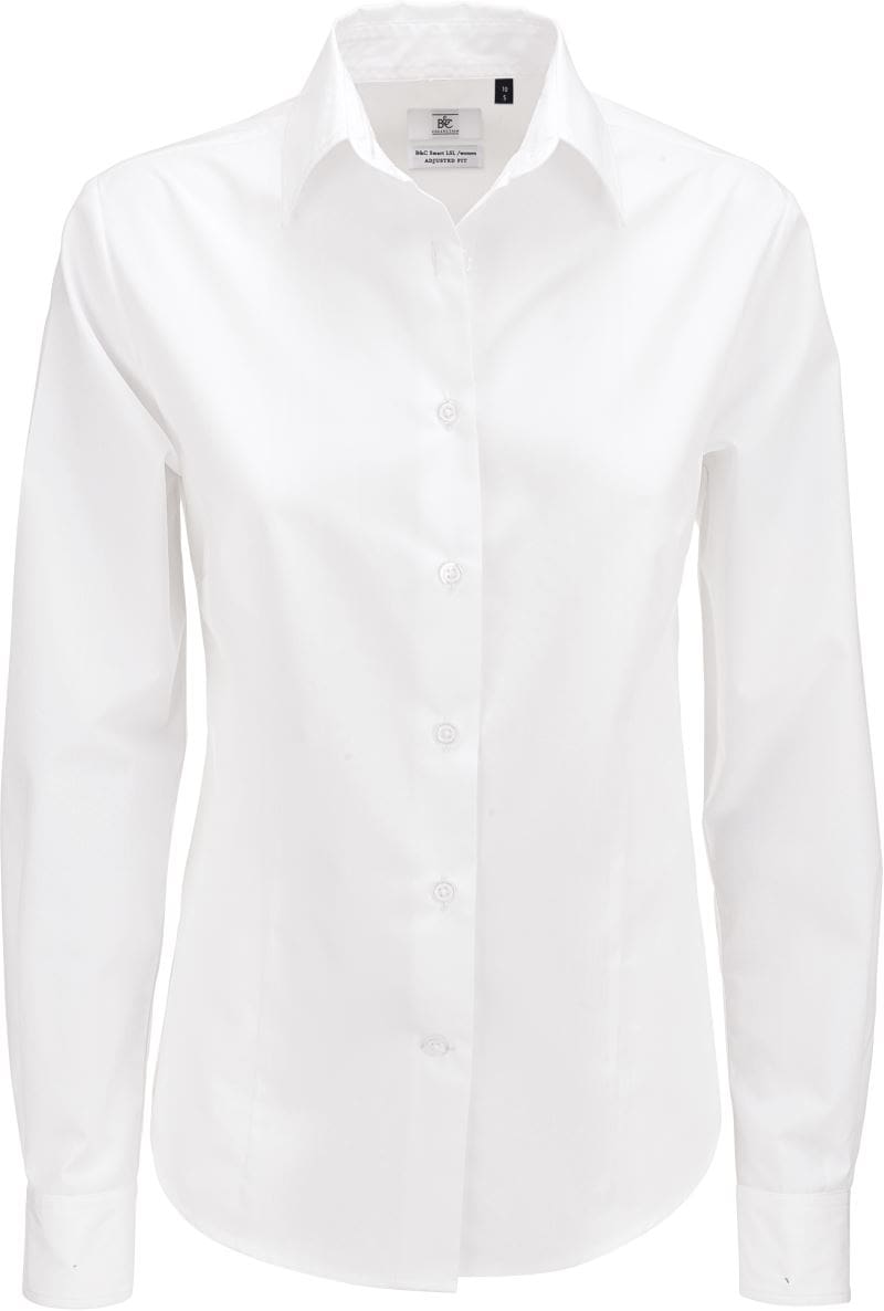 Taillierter Schnitt mit Abnäher an Brust, Vorder- und Rückenteil, sanft geschwungener weiblicher Kragen, eckige, mit 2 Knöpfen verstellbare Manschetten und zusätzlichen Knopflöchern für Manschettenknöpfe, Manschettenstulpen, abgerundeter Saum unten, im Kreuzstich angenähte passende Perlmuttknöpfe, letztes Knopfloch quer, 1 Ersatzknopf, Easy Care, 50° waschbar