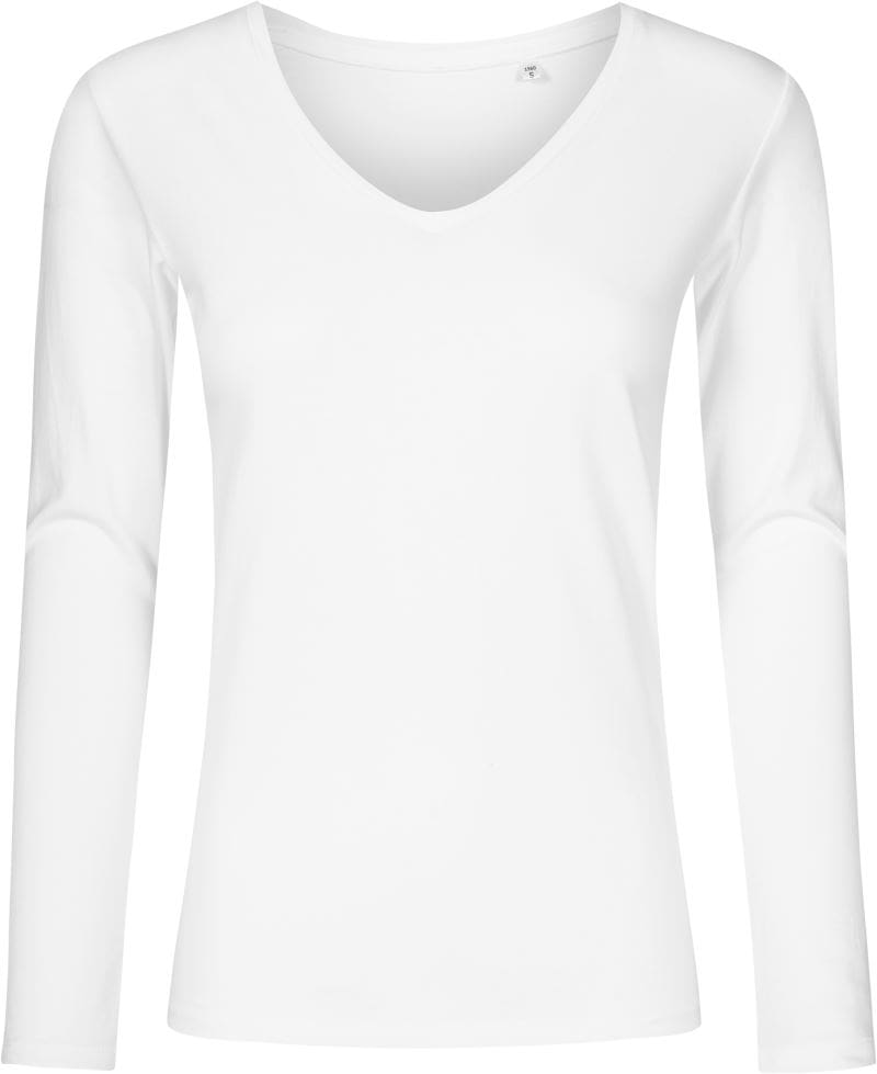 Schmaler Schnitt, schmal eingefasster V-Ausschnitt, neutrales Größenlabel